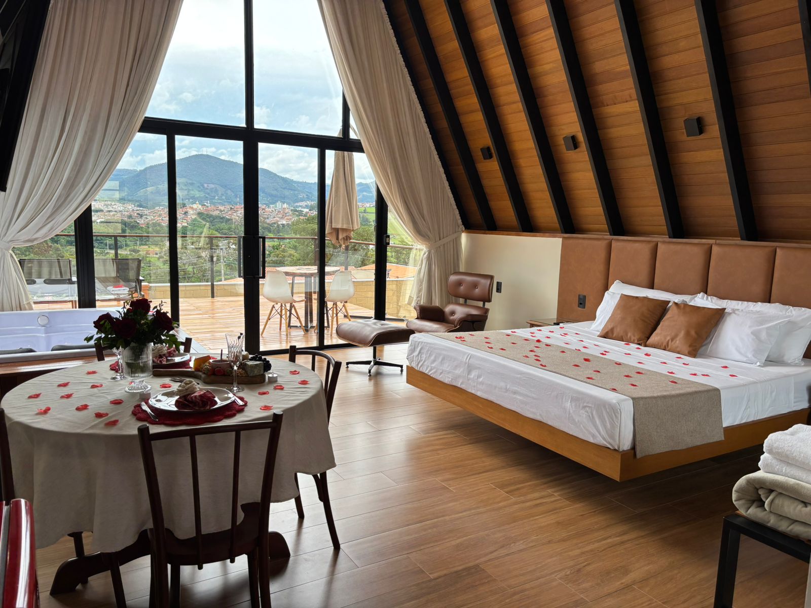 Localizado em Andradas, no coração da Serra da Mantiqueira, o chalé combina fácil acesso com clima de refúgio: está a cerca de 100 km de Campinas e 35 km de Poços de Caldas, ideal para quem procura um chalé para casal em meio à tranquilidade das montanhas de Minas Gerais.